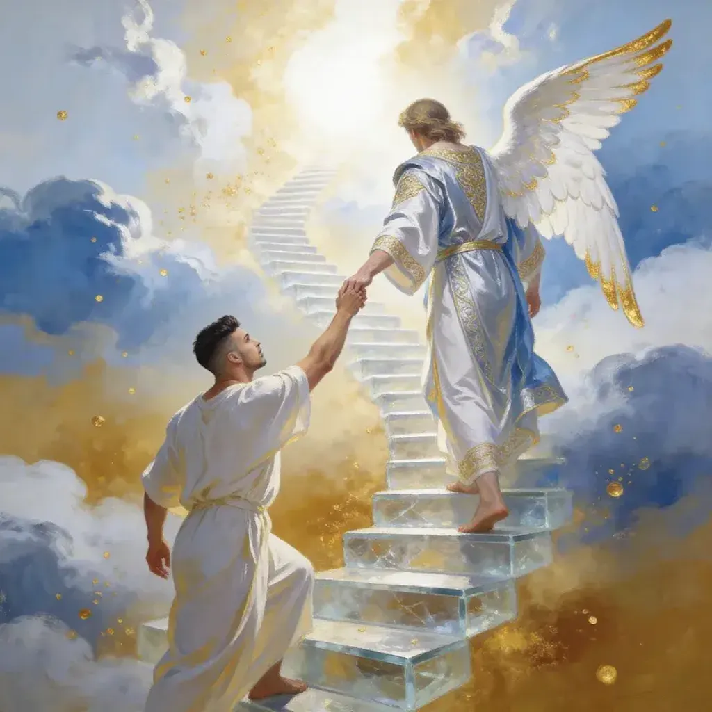 Your photo will be transformed into a beautiful guardian angel painting. This usually takes about 30-60 seconds. You'll see a progress indicator while we work.